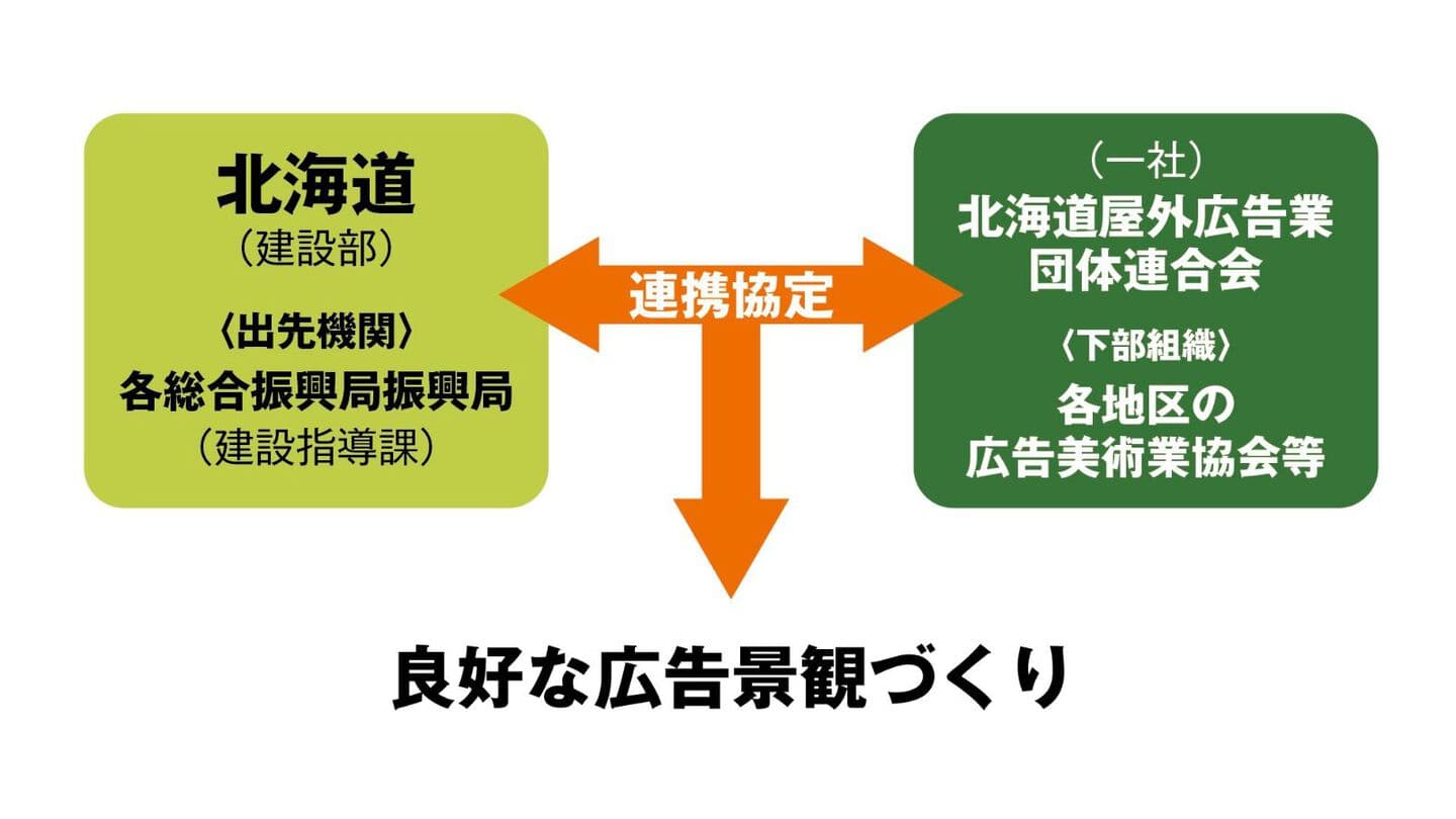 平成24年6月15日に『北海道』と『一般社団法人北海道屋外広告業団体連合会』は、良好な広告景観の形成に向けて、相互に連携・協力して取組を行う連携協定を締結しました。